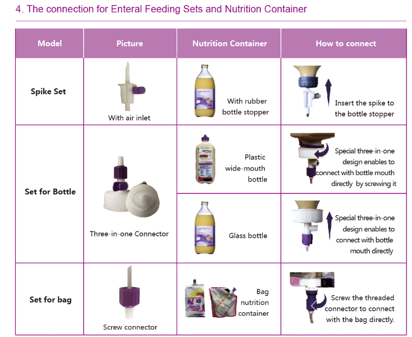 Dvisluoksnis koekstruzijos būdu pagamintas enteralinio maitinimo rinkinys su DEHP neturinčiu TOTM plastifikatoriumi – universali laiptuota jungtis apsaugo nuo IV sistemos prijungimo klaidų, suderinama su įvairiais siurbliais ir vamzdeliais, turi Y formos angą lengvam praplovimui.